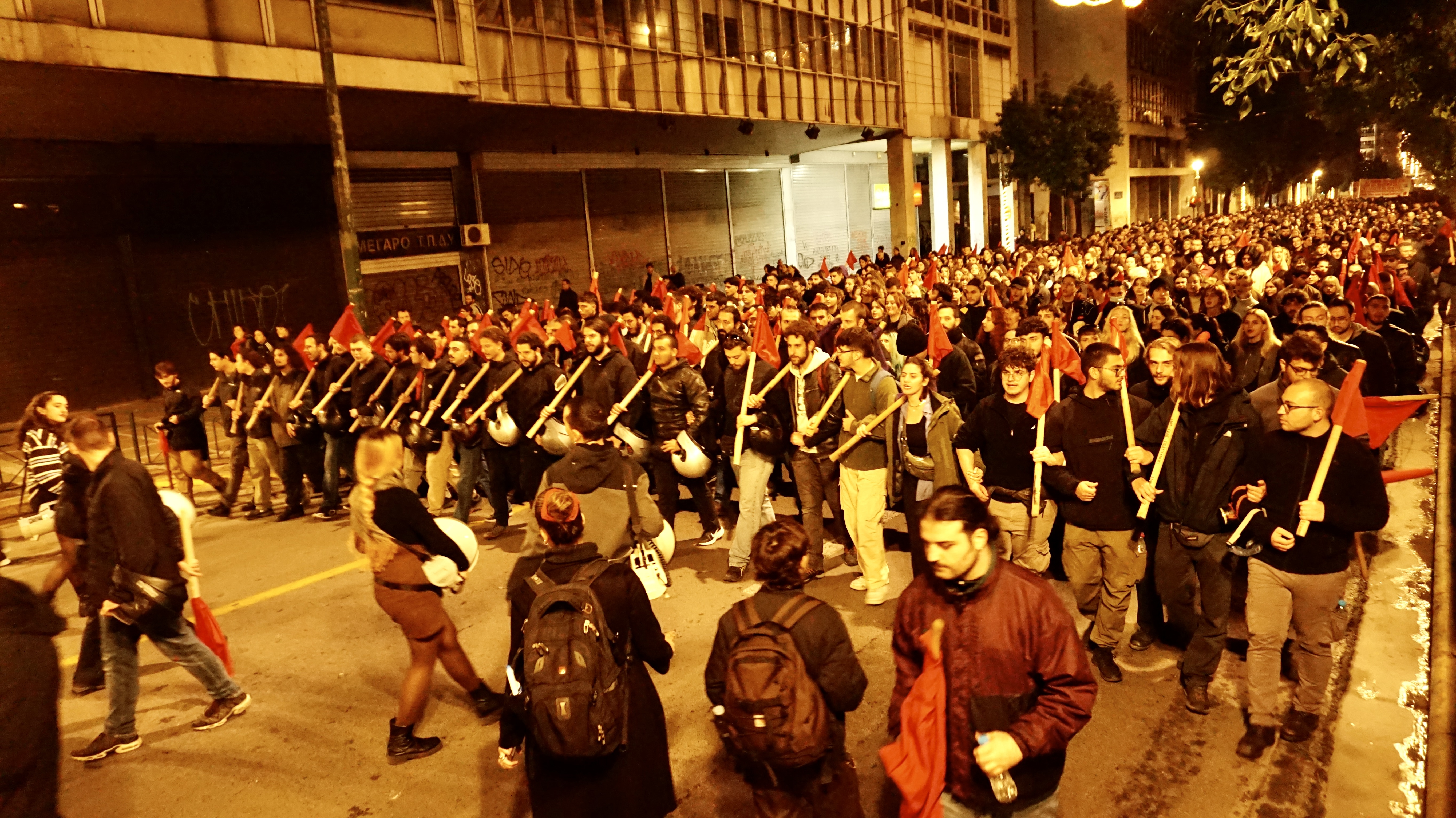Άποψη μέρους του φοιτητικού μπλοκ στη χτεσινοβραδινή πορεία Αλέξη Γρηγορόπουλου – Δεκεμβριανής Εξέγερσης στην Αθήνα. (φωτο Ε.Α.)