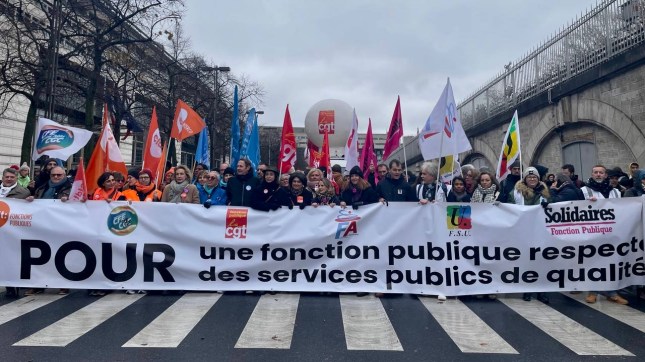 Από τις μεγάλες απεργιακές διαδηλώσεις στη Γαλλία, στη φωτό πορεία στην Τουλούζ 12/12/24, ενάντια στο πραξικοπηματικό καθεστώς του Προέδρου Μακρόν. Η εργατική τάξη και η νεολαία έχουν ξεσηκωθεί στην Ευρώπη ενάντια στη βάρβαρη λιτότητα και τους πολέμους καπιταλισμού ΕΕ. (φωτο CGT)