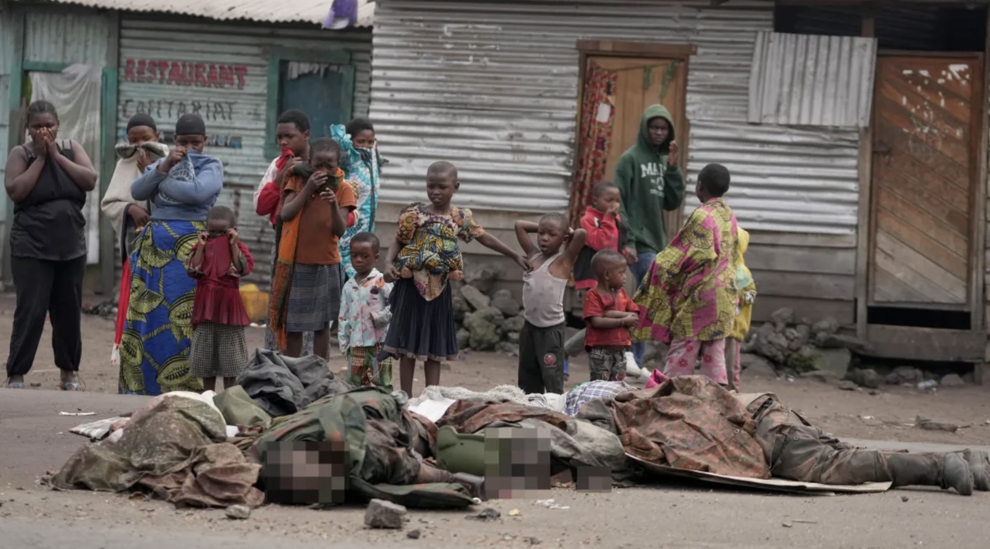 Σοροί στρατιωτών σε δρόμο της πόλης Γκόμα του Κονγκό την περασμένη Πέμπτη. (φωτοBrian Inganga)