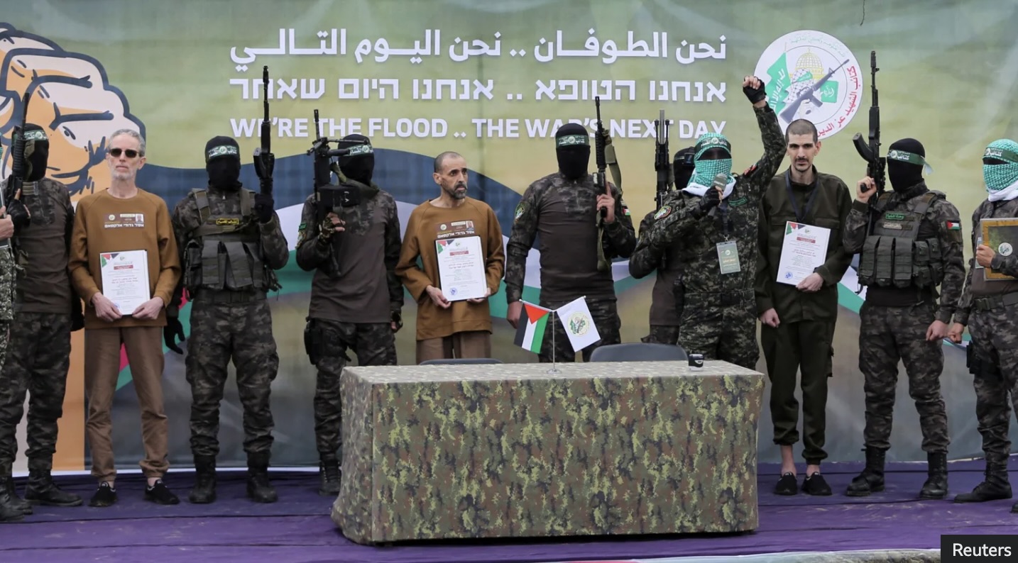 Απελευθέρωση αιχμαλώτων από τη Χαμάς στην περιοχή Ντεϊρ αλ Μπάϊλ της Γάζας το περασμένο Σάββατο (φωτο reuters)