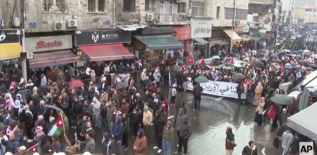Διαδήλωση στο Αμμάν, Ιορδανίας, στις 7 Φλεβάρη ενάντια στις απειλές του Τραμπ για εθνοκάθαρση στην Παλαιστίνη με εκδίωξη των Παλαιστινίων σε Ιορδανία και Αίγυπτο. (φωτο AP)