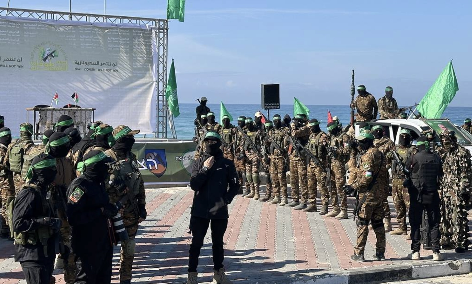 Από τελετή παράδοσης Ισραηλινών αιχμαλώτων από τη Χαμάς στη Γάζα. Η Χαμάς έχει προτείνει την απελευθέρωση όλων των αιχμαλώτων που παραμένουν στη Λωρίδα της Γάζας με αντάλλαγμα διαρκή εκεχειρία και την πλήρη αποχώρηση του ισραηλινού στρατού από τη Γάζα, δήλωσε την περασμένη Τετάρτη ο Χαζέμ Κασέμ εκπρόσωπος της Χαμάς. Τόνισε ότι οι δηλώσεις Τραμπ και Ισραήλ «για την απομάκρυνση της Χαμάς από τη Γάζα είναι ένας γελοίος ψυχολογικός πόλεμος και η απόσυρση ή ο αφοπλισμός της αντίστασης από τη Γάζα είναι απαράδεκτα». (φωτο Hasan Alzaamin)