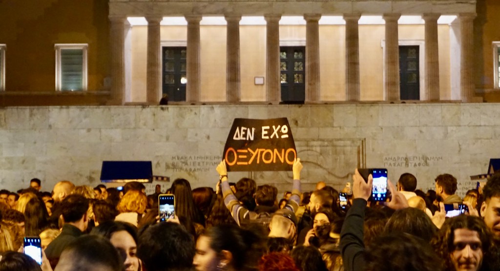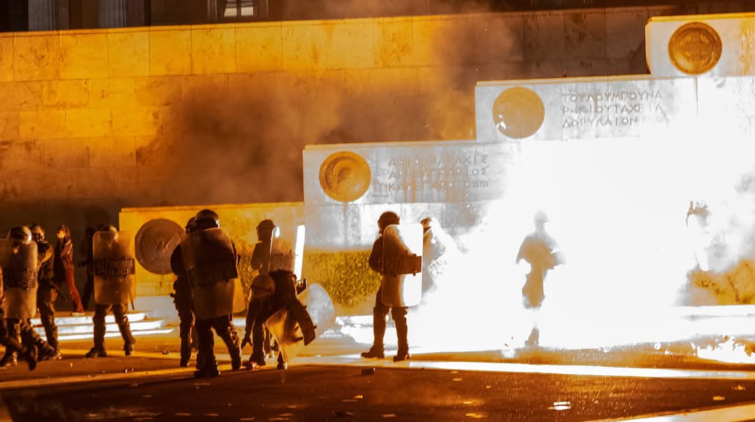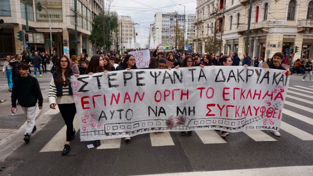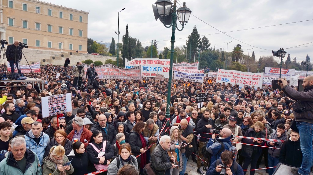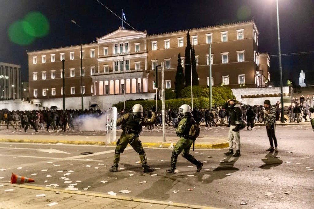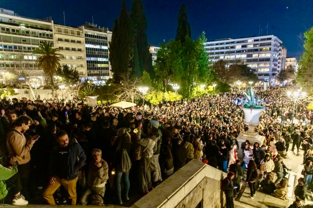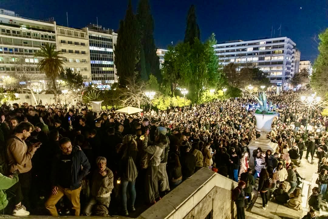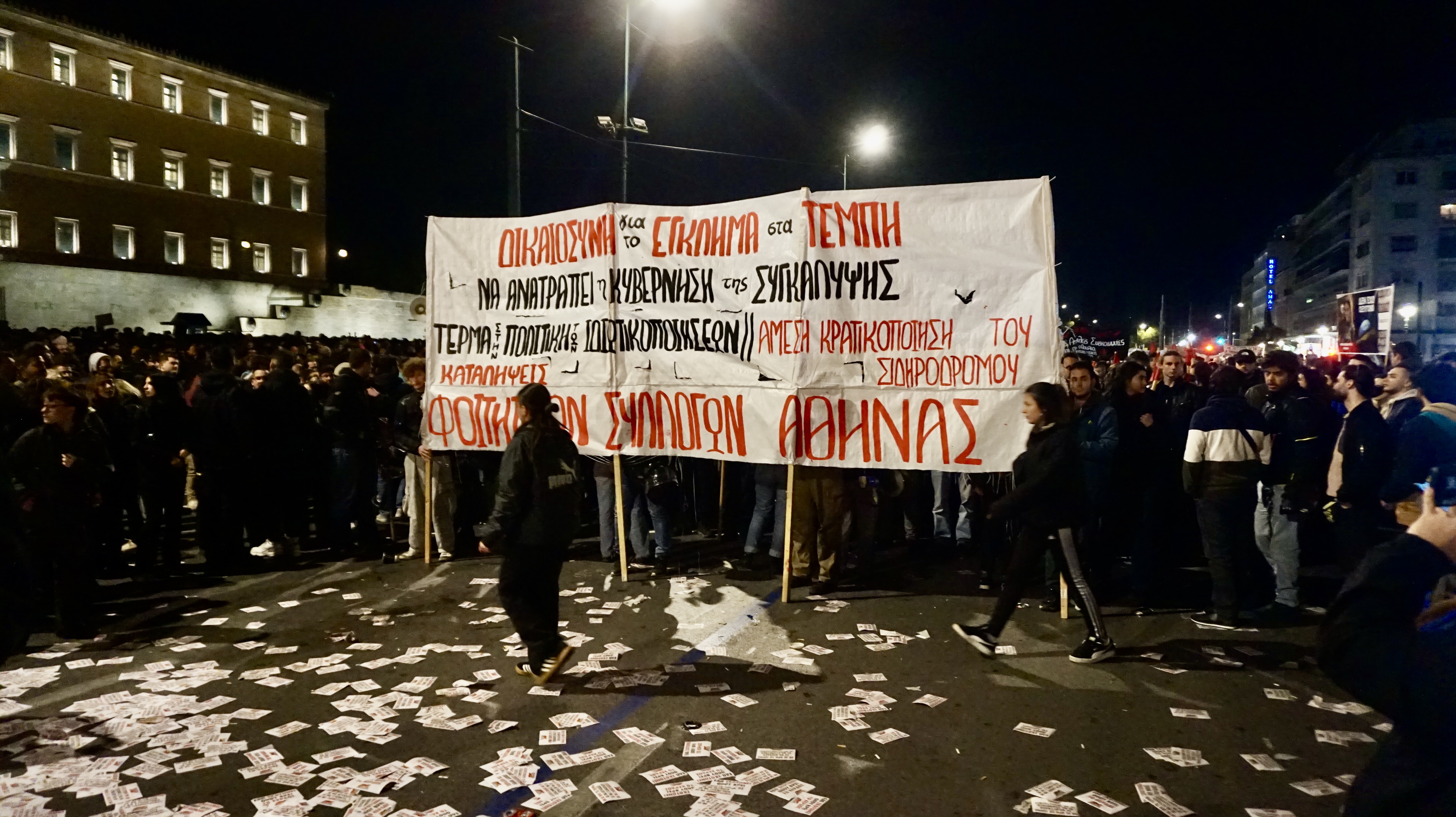 Αλλά χιλιάδες παράμειναν μπροστά στη Βουλή και σ’ όλη τη πλατεία, σχεδόν όλοι νεολαία, και η ατμόσφαιρα έγινε διαφορετική. Σχηματίστηκε μεγάλη πορεία με το πανό των καταλήψεων φοιτητικών συλλόγων μπροστά και συνθήματα “παραιτήσου”, “Μητσοτάκη κάθαρμα” και “δολοφόνοι, δολοφόνοι’!