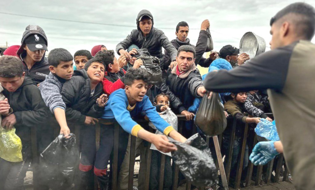 Διανομή φαγητού στη Γάζα από διεθνή φιλανθρωπική οργάνωση. Το Ισραήλ σταματά την πρόσβαση στη Γάζα ανθρωπιστικής βοήθειας και επιβάλλει λιμό. (φωτο The News Line)