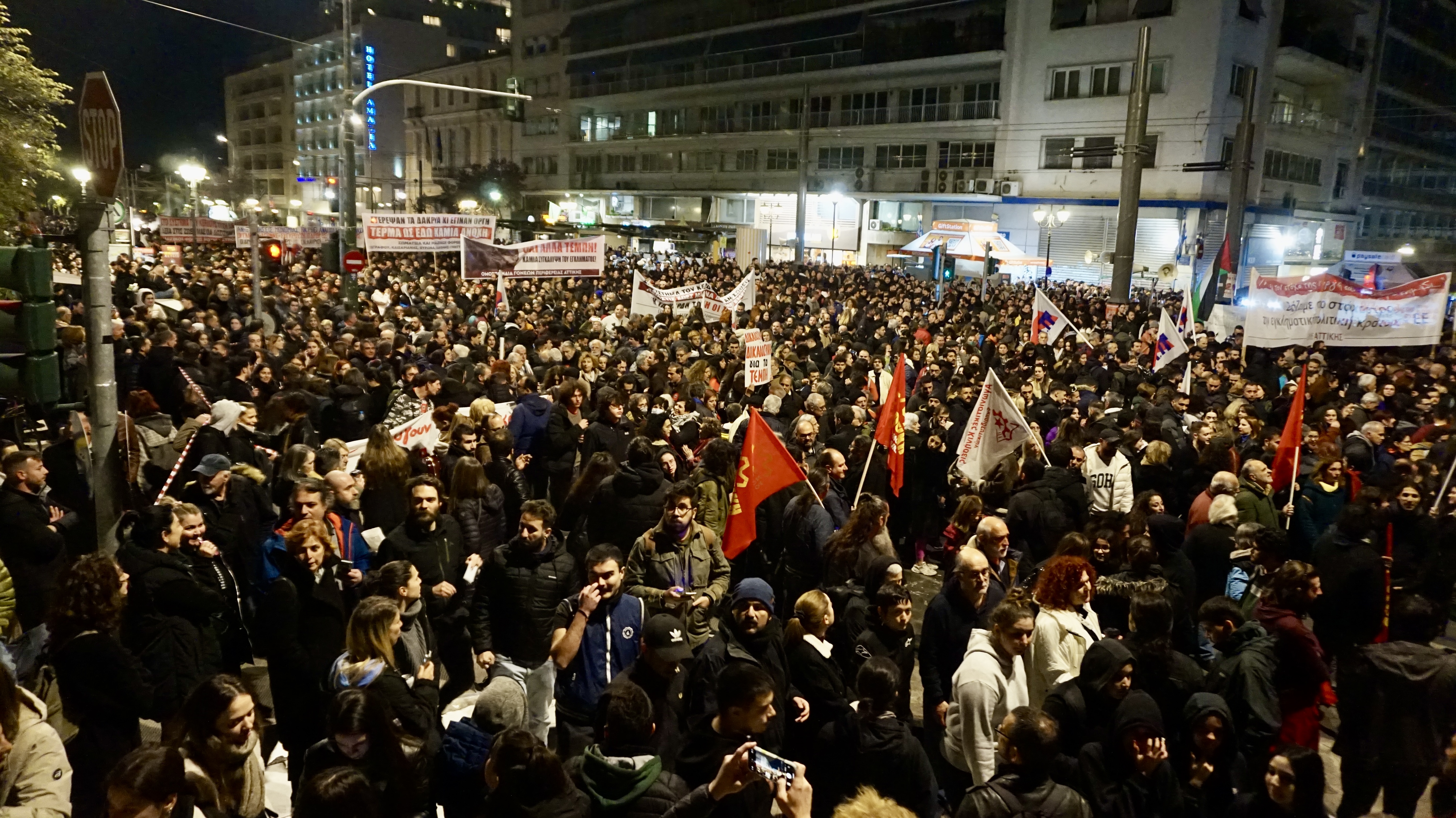 Μετά τη λήξη των ομιλιών τα πανό των εργατικών κέντρων και ομοσπονδιών αποχώρησαν από το Σύνταγμα. Τώρα η συγκέντρωση μπροστά στη Βουλή άλλαξε χαραχτήρα αφού πάνω από 5.000 νεολαία, φοιτητές/τριες και αριστερά κόμματα άρχισαν να φωνάζουν τα συνθήματα “Παραιτήσου!”, “Δολοφόνοι, δολοφόνοι” και “Μητσοτάκη κάθαρμα”.