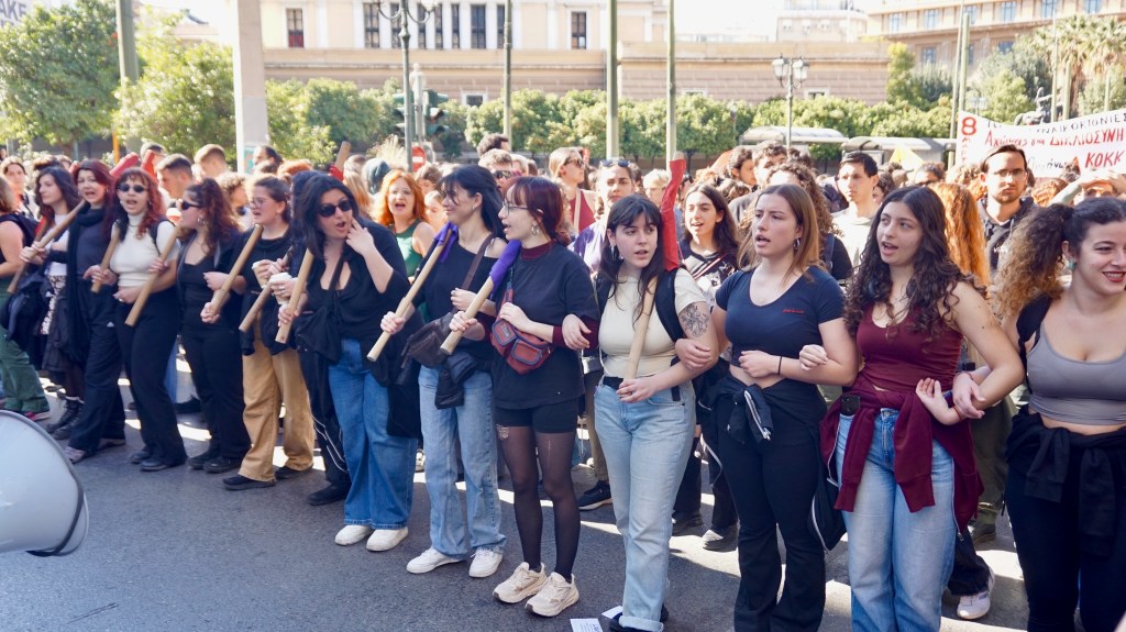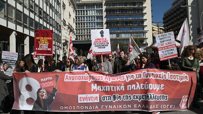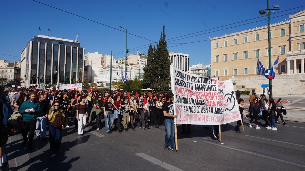 Η Ομοσπονδία Γυναικών Ελλάδας και φοιτητικοί σύλλογοι – που υποστηρίζουν την πολιτική του ΚΚΕ – πραγματοποίησε μαζική πορεία από το Σύνταγμα στο Μοναστηράκι.