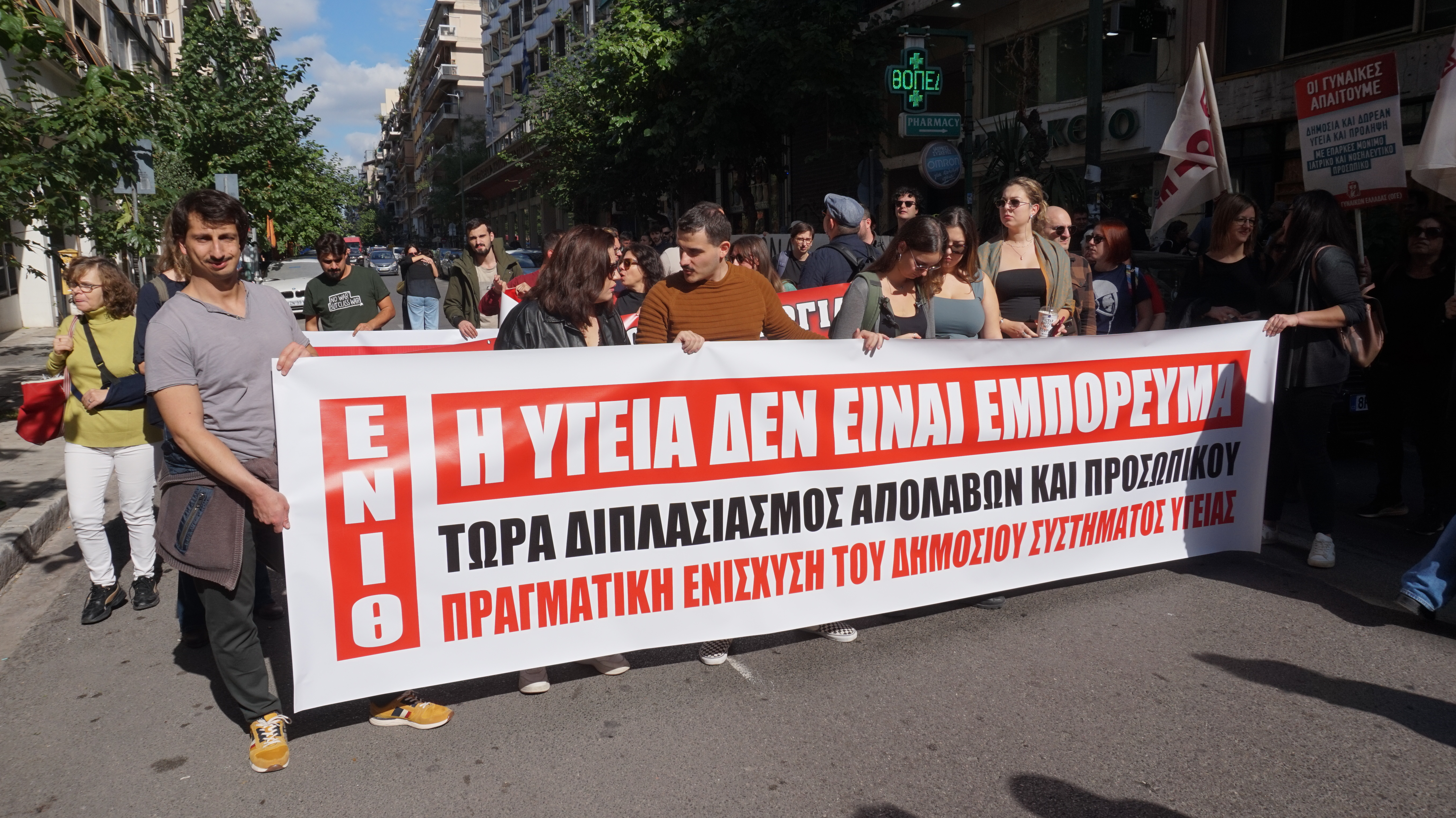 Η ομοσπονδία ΠΟΕΔΗΝ εργαζομένων στα δημόσια νοσοκομεία είχε κηρύξει απεργία χτες Πέμπτη και πραγματοποιήθηκε πορεία στην Αθήνα με συγκέντρωση στο Υπουργείο Υγείας. Χτες Πέμπτη και σήμερα Παρασκευή η ΟΕΝΓΕ (Ομοσπονδία γιατρών) και η ΕΙΝΑΠ (Ομοσπονδία γιατρών Αθήνας – Πειραιά) πραγματοποίησαν 48ωρη πανελλαδική απεργία και συγκέντρωση στο Υπουργείο Υγείας με ομιλητές τους προέδρους ΟΕΝΓΕ Γ. Γαλανόπουλο και ΕΙΝΑΠ Γ. Σιδέρη καθώς και γιατρούς της περιφέρειας που επανέλαβαν τις διεκδικήσεις των ομοσπονδιών και μίλησαν για συνέχιση του αγώνα χωρίς να προτείνουν τίποτα το συγκεκριμένο, και με απόλυτη απουσία αυτοκριτικής για τις μικρές κινητοποιήσεις την ώρα που η χούντα Μητσοτάκη τσακίζει το ΕΣΥ ασθενείς, εργαζομένους/ες και γιατρούς.
