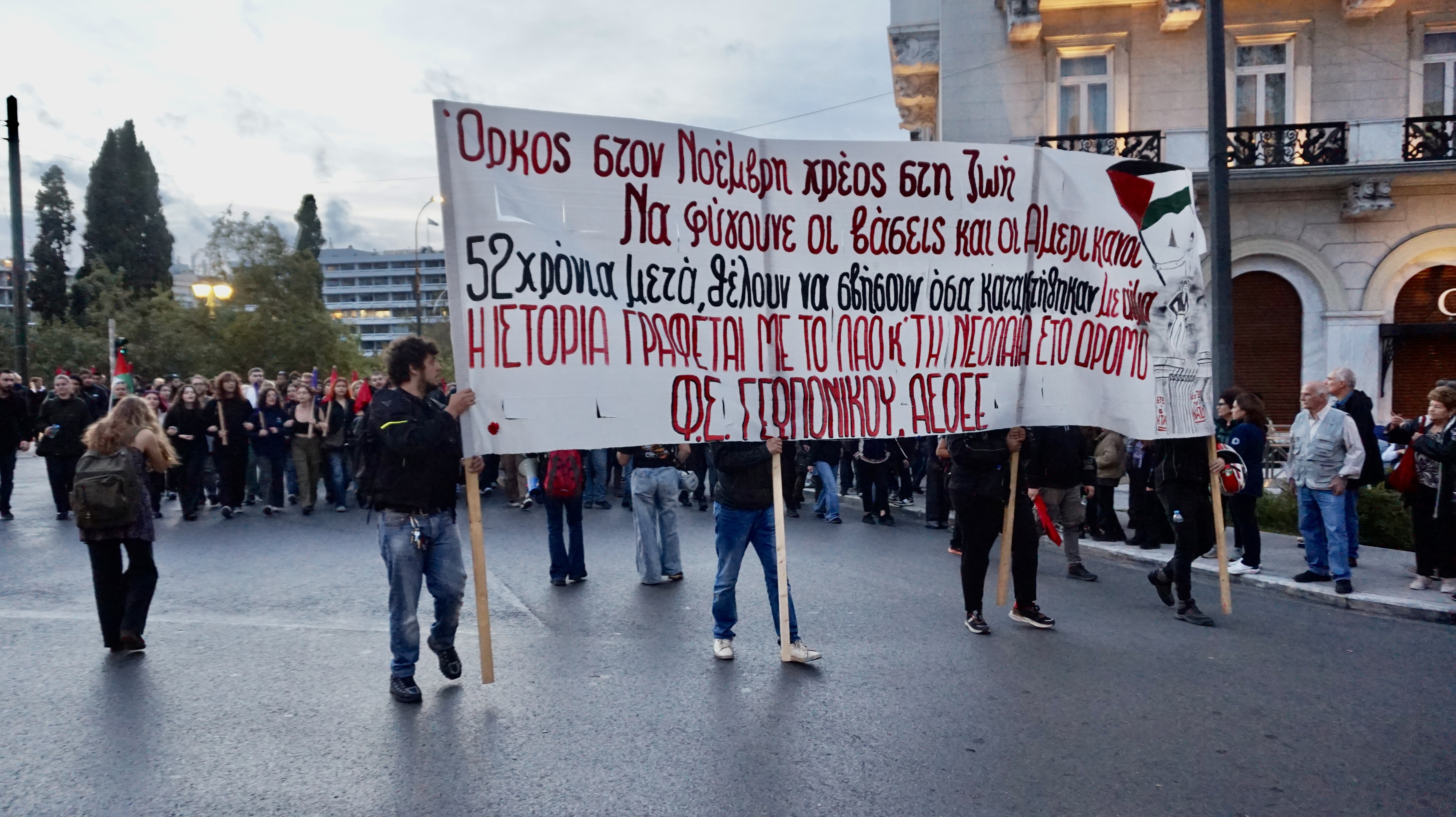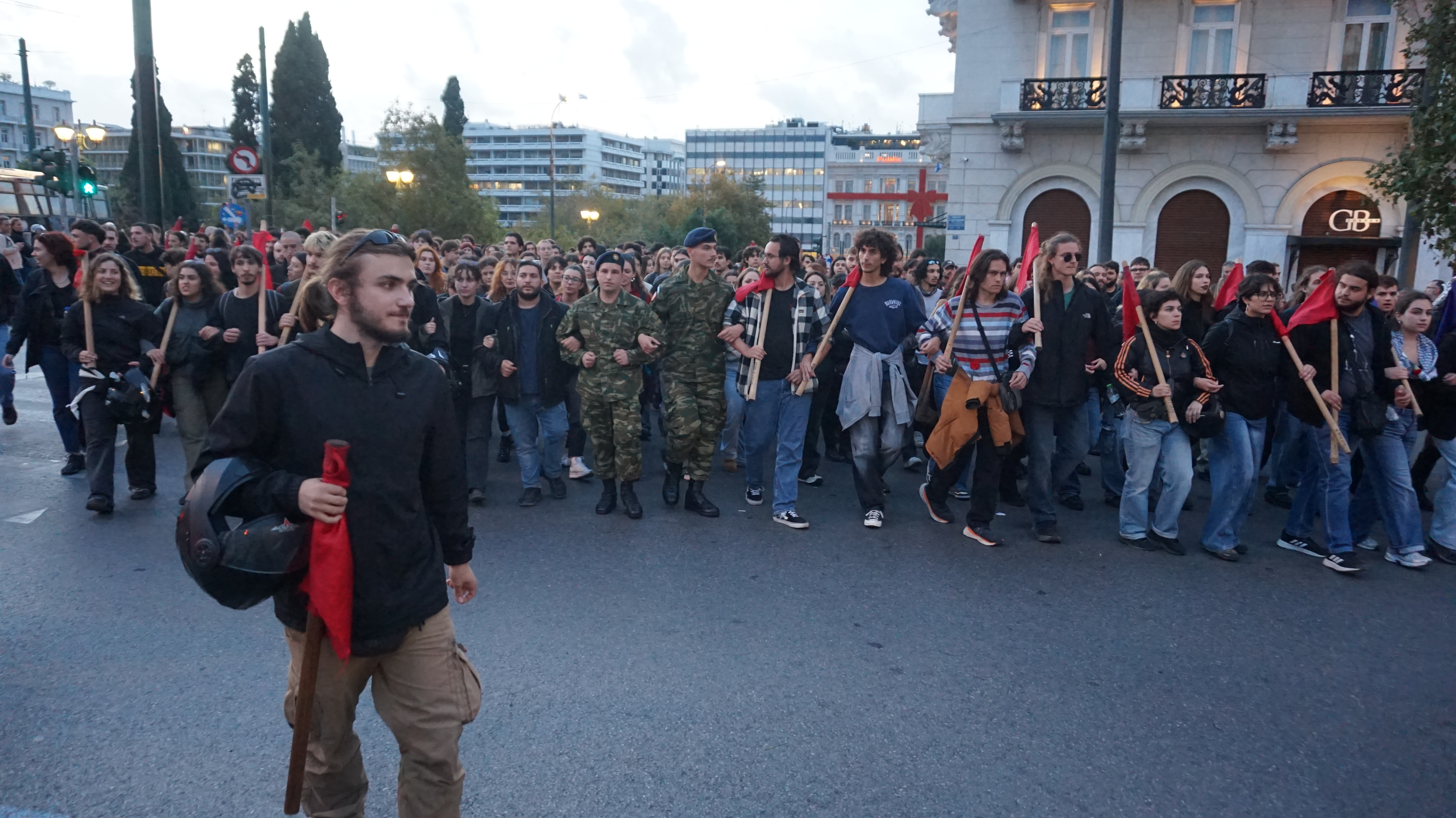 Με συνεχή συνθήματα ενάντια σε ΕΕ, ΝΑΤΟ, Αμερικανούς, πολέμους, γενοκτονία Γάζας, ΜΑΤ, αλλά και Λευτεριά στην Παλαιστίνη, πάνω από 40.000 φοιτητές/τριες, νεολαία και εργαζόμενοι/ες συμμετείχαν στην πορεία από το κέντρο της Αθήνας στην Αμερικανική Πρεσβεία.
