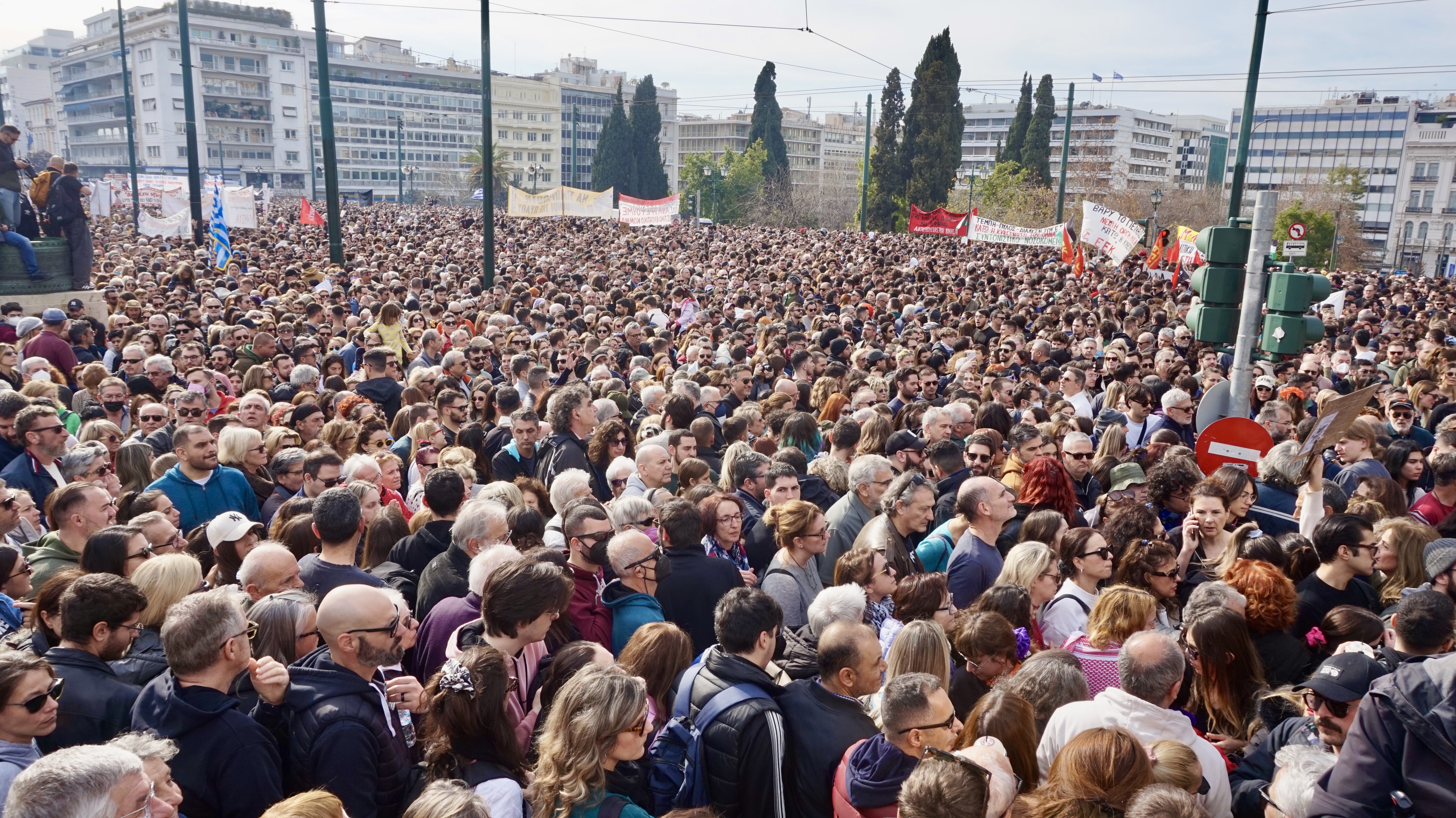 Από τη μεγαλειώδη συγκέντρωση μπροστά στη Βουλή για την καταδίκη των υπεύθυνων και της χούντας Μητσοτάκη για το έγκλημα στα Τέμπη 26/1/25. (φωτο Ε.Α.)