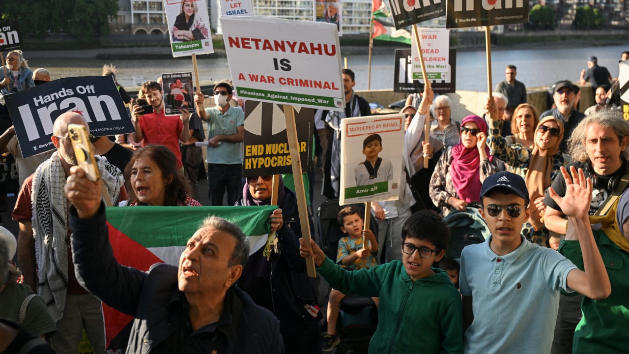 Από τη μεγάλη διαδήλωση στο Λονδίνο τον περασμένο Ιούνη κατά των βομβαρδισμών ΕΠΑ-σιονιστών στο Ιράν. (φωτο reuters)