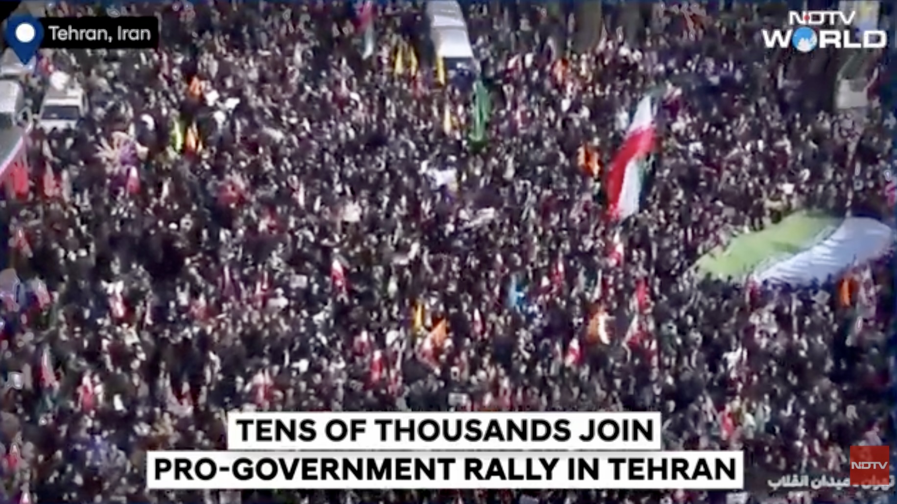 Από τη σημερινή (Δευτέρα μεσημέρι) μεγάλη διαδήλωση στην Τεχεράνη ενάντια στις απειλές Τραμπ και υποστήριξης στην Ισλαμική Δημοκρατία. (φωτο ndtv)