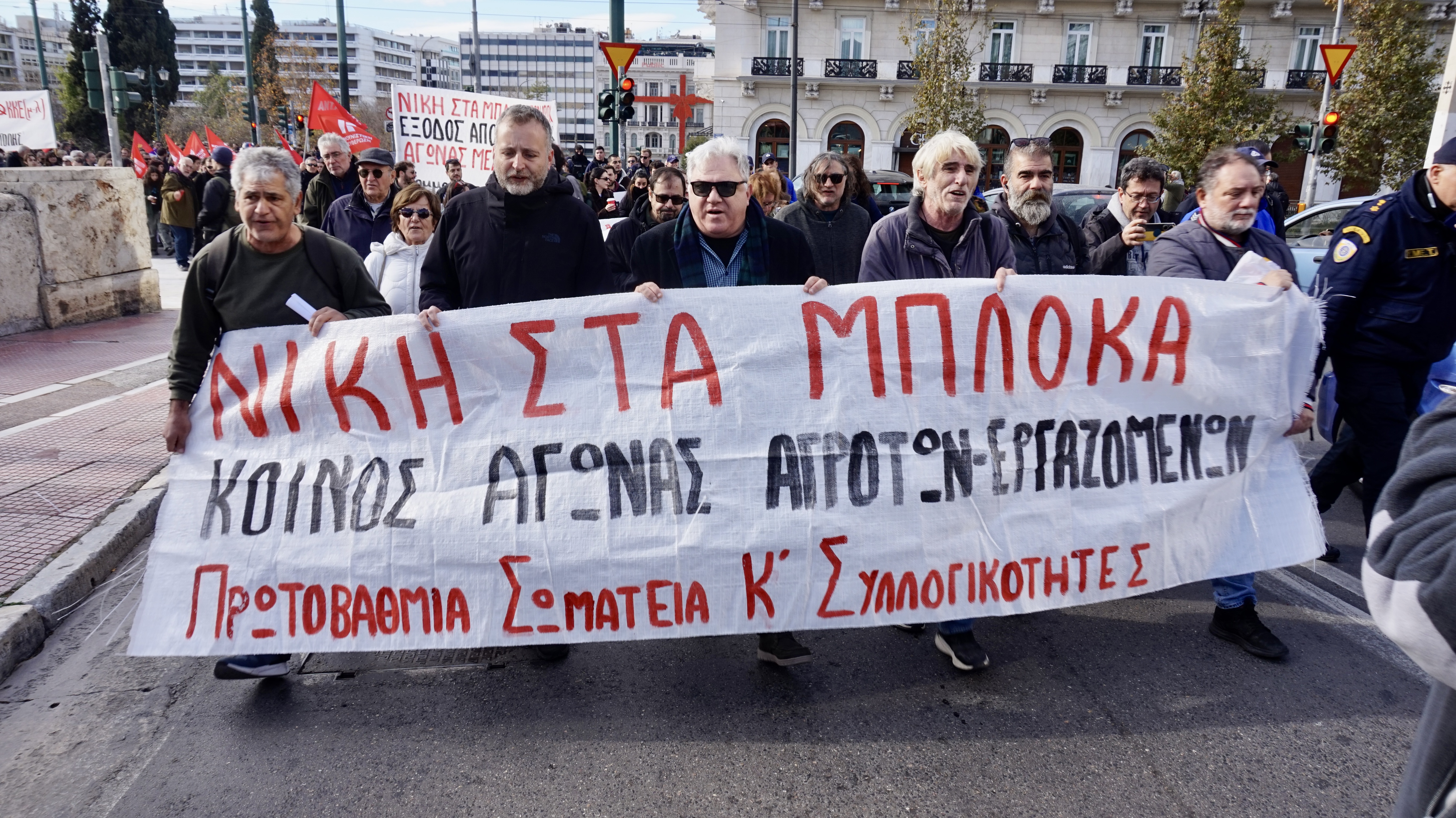 Από τη χτεσινή (Κυριακή) συγκέντρωση και πορεία στην Αθήνα με κάλεσμα για Νίκη στα Μπλόκα και κοινό αγώνα αγροτών-εργαζομένων. Αυτό σημαίνει κάλεσμα για Γενική Πολιτική Απεργία Διαρκείας για την ανατροπή της χούντας Μητσοτάκη. (φωτο Ε.Α.)