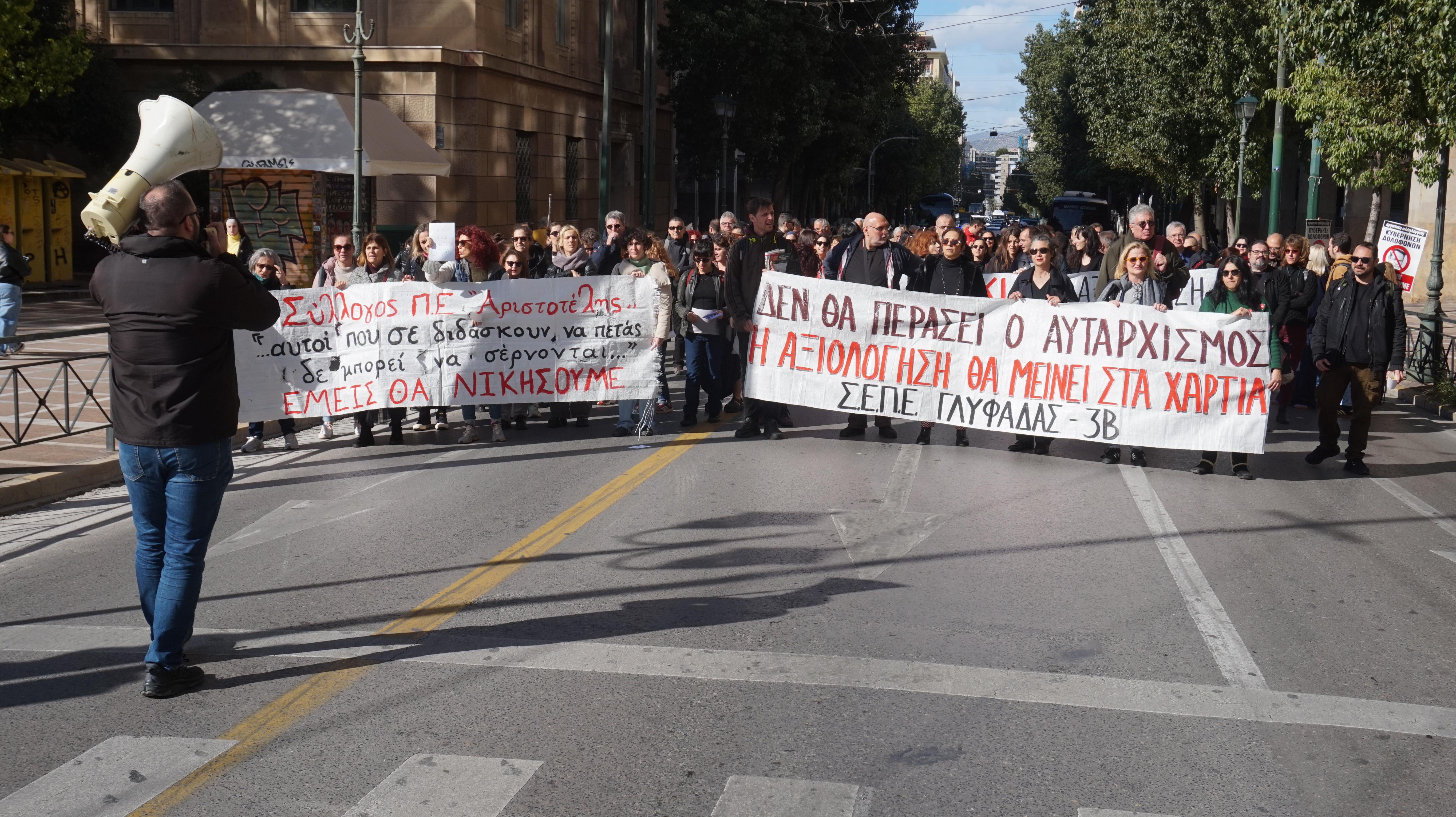 Μπροστά στη Βουλή δασκάλες και καθηγητές κάλεσαν τις ομοσπονδίες να κηρύξουν πανελλαδικές απεργίες, μίλησαν για τον αγώνα τους ενάντια στα “Ωνάσεια” σχολεία, και τόνισαν ότι η σημερινή πάλη δεν είναι απλά είναι πάλη αλληλεγγύης στις τρεις δασκάλες, και στους εκατοντάδες άλλους/ες εκπαιδευτικούς που διώκονται, αλλά και πάλη για το δικαίωμα της απεργίας. Η κυβέρνηση Μητσοτάκη, δήλωσαν θέλει να καταστρέψει το δικαίωμα της απεργίας και τη δημόσια δωρεάν παιδεία.