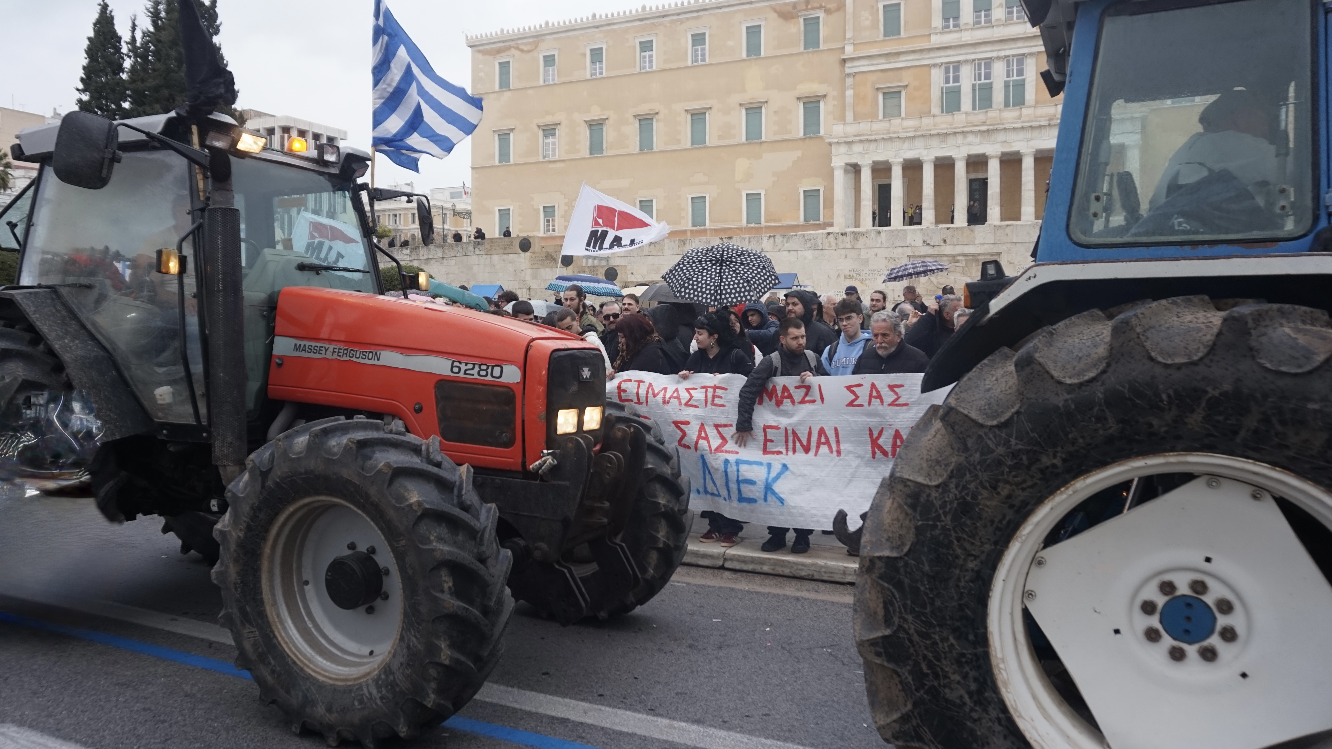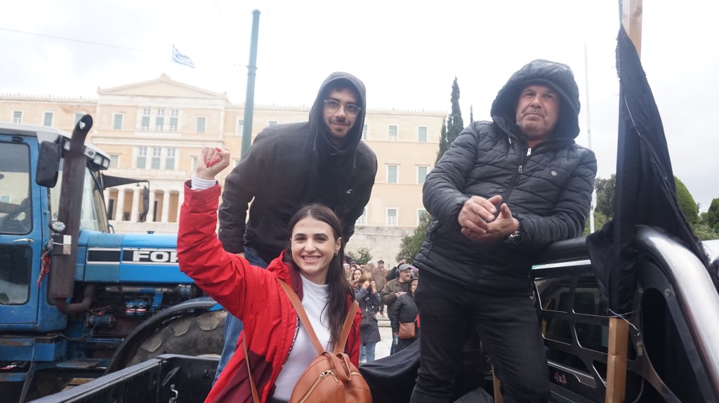 Η Αναστασία και η κόρη τους από τα Γρεβενά, 420 χλμ από την Αθήνα. Ενάντια στην ΚΑΠ και στη Μερκοσούρ της ΕΕ, “μπλόκο στην Κυβέρνηση” Μητσοτάκη. Είναι ώρα Πανελλαδικής Πανεργατικής – Παναγροτικής – Παμφοιτητικής Συνέλευσης για οργάνωση Γενικής Απεργίας ανατροπής της χούντας Μητσοτάκη, για κυβέρνηση εργαζομένων με εθνικοποίηση τραπεζών. (Ε.Α.)Οικογένεια αγροτών από τη Θήβα στο αγροτικό τους έξω από τη Βουλή χτες Παρασκευή. Συνάντησαν τους εργαζομένους και τους φοιτητές που τους καλοδέχτηκαν. Αλλά οι αγροτοσυνδικαλιστές του ΠΑΜΕ-ΚΚΕ στέλνουν πίσω τα τρακτέρ αντί να μπλοκάρουν τη Βουλή και τη χούντα Μηστοτάκη. (φωτο Ε.Α.)Περίπου 45 τρακτέρ στάθμευσαν έξω από τη Βουλή από βόρεια Ελλάδα, Θεσσαλία, Στερεά, Πελοπόννησο με αντιπροσωπείες και από την Κρήτη. Κύριο σύνθημα “Τα μπλόκα είναι εδώ!” (φωτο Ε.Α.)Τεράστια νίκη του κινήματος για Λευτεριά στην Παλαιστίνη στη Βρετανία! Το δικαστήριο έκρινε παράνομη την απόφαση της Κυβέρνησης Εργατικών του Στάρμερ που είχε απαγορεύσει την ακτιβίστικη οργάνωση Παλεστάϊν Άξιον!Η ιμπεριαλιστική κυβέρνηση του Στάρμερ, που υποστηρίζει απόλυτα τους σιονιστές, καταρρέει. (φωτο ΕΡΑ)