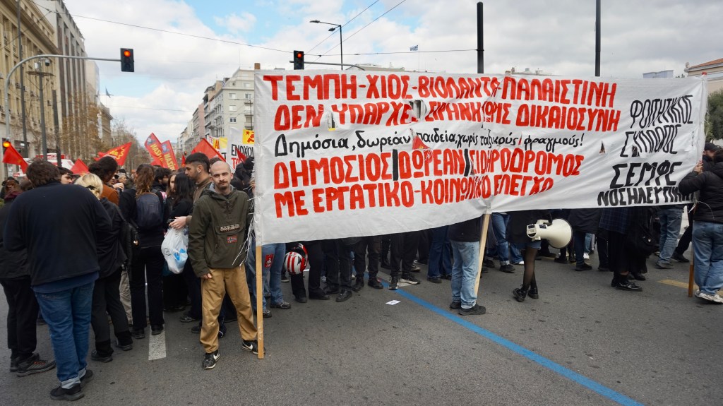 Το εργατικό κίνημα και η νεολαία με τους φοιτητές/τριες πρέπει να καλέσουν σε Πανελλαδική Πανεργατική Παναγροτική Παμφοιτητική Συνέλευση για την οργάνωση Γενικής Πολιτικής Απεργίας Διαρκείας για την ανατροπή της χούντας Μητσοτάκη. Για να αρχίσει η δικαίωση των 57 νεκρών και των εκατοντάδων άλλων θυμάτων “εργατικών ατυχημάτων”.