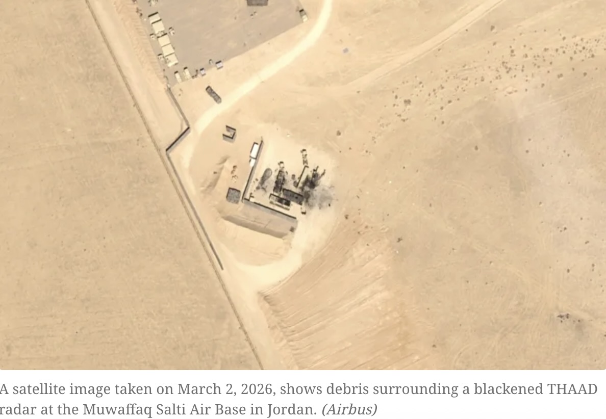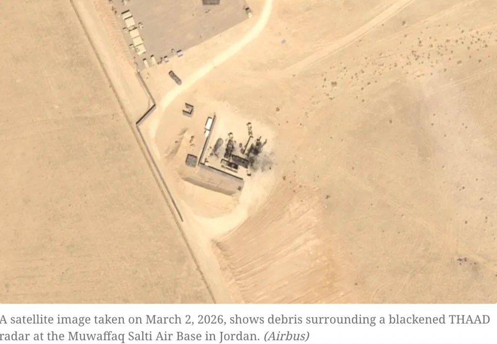 Αεροφωτογραφία, 2/3/26, που δείχνει τη χτυπημένη από ιρανικό πύραυλο αμερικανική βάση Μουγιαφάκ Σάλτι στην Ιορδανία.