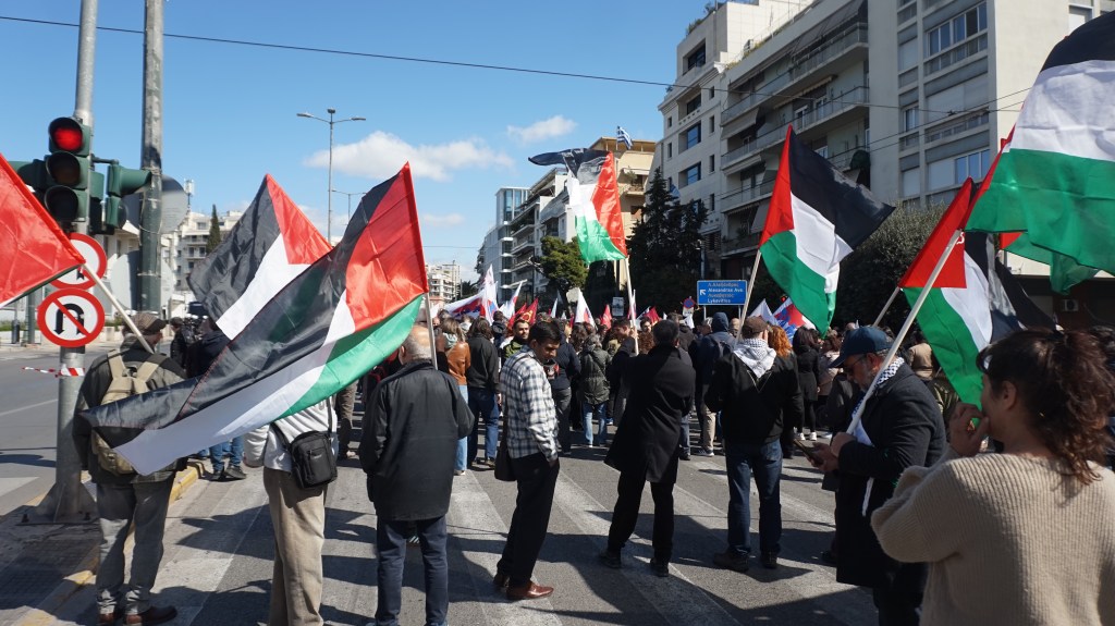 Από την αντιπολεμική πορεία της περασμένης Κυριακής (1/3/26) στην Αμερικανική και στην Ισραηλινή Πρεσβείες στην Αθήνα. (φωτο Ε.Α.)