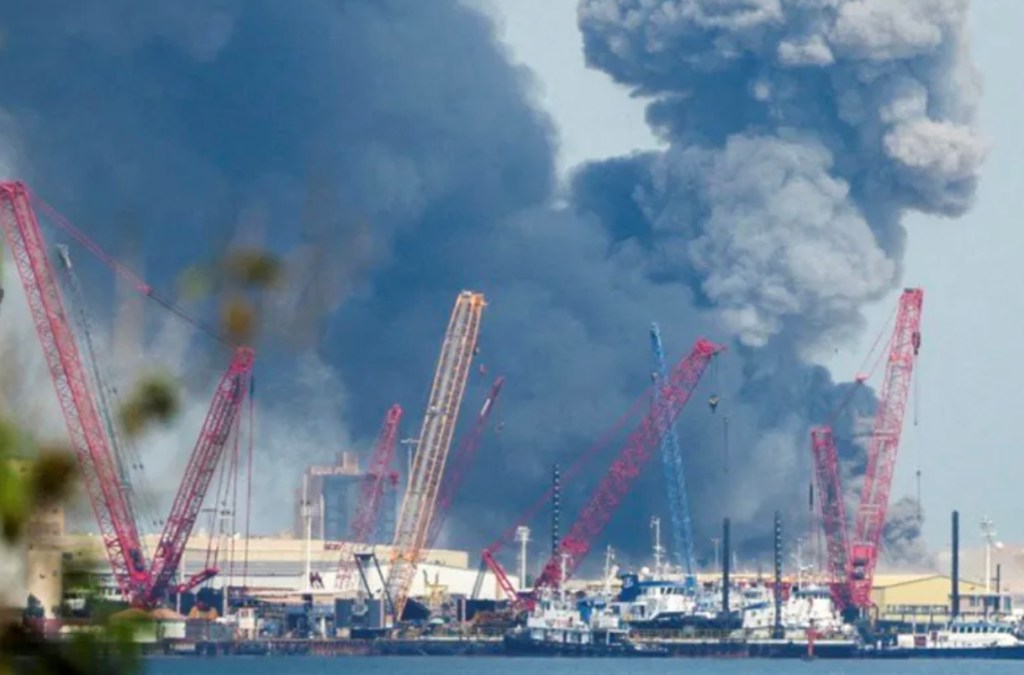 Καπνοί στην αμερικανική βάση του Πέμπτου Στόλου στη Μανάμα του Mπαχρέϊν μετά από επίθεση ιρανικών πυραύλων και ντρον στις αρχές του Μάρτη. (φωτο reuters)