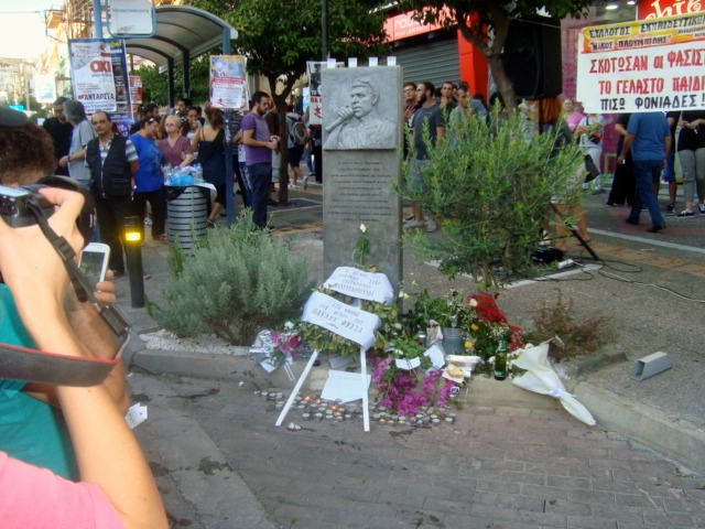 Το μνημείο για τον Παύλο Φύσσα στην οδό Τσαλδάρη 60, στην Αμφίαλη, Φωτό ΕΑ.