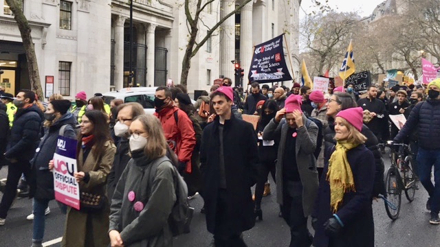 Μεγάλη απεργιακή πορεία πανεπιστημιακών (καθηγητών, λεκτόρων, επικουρικών) χτες Παρασκευή 3 Δεκέμβρη στο κέντρο του Λονδίνου. Στην απεργία συμμετείχαν 58 πανεπιστήμια στα οποία πάνω από 50% των καθηγητών ψήφισε για απεργία (σύμφωνα με αντεργατικό νόμο). Οι πανεπιστημιακοί αγωνίζονται για τις συντάξεις τους και ενάντια στις ελαστικές σχέσεις εργασίας. Θα υπάρξει νέος γύρος απεργιακών κινητοποιήσεων το Γενάρη 2022.