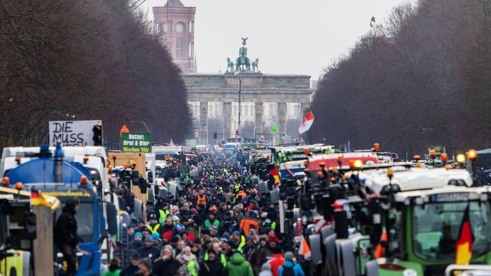 Χτες Δευτέρα μεσημέρι στο Βερολίνο πάνω από από 5.000 τρακτέρ και αγροτικά οχήματα και περισσότεροι από 20.000 αγριεμένοι αγρότες πραγματοποίησαν μεγάλο συλλαλητήριο στην Πύλη του Βρανδεμβούργου απαιτώντας να μην περικοπούν από την κυβέρνηση οι φοροαπαλλαγές (για φτηνότερο πετρέλαιο, ηλεκτρικό κ.α.).