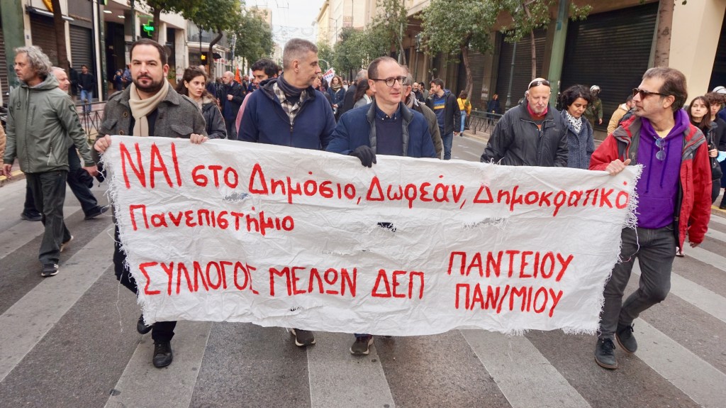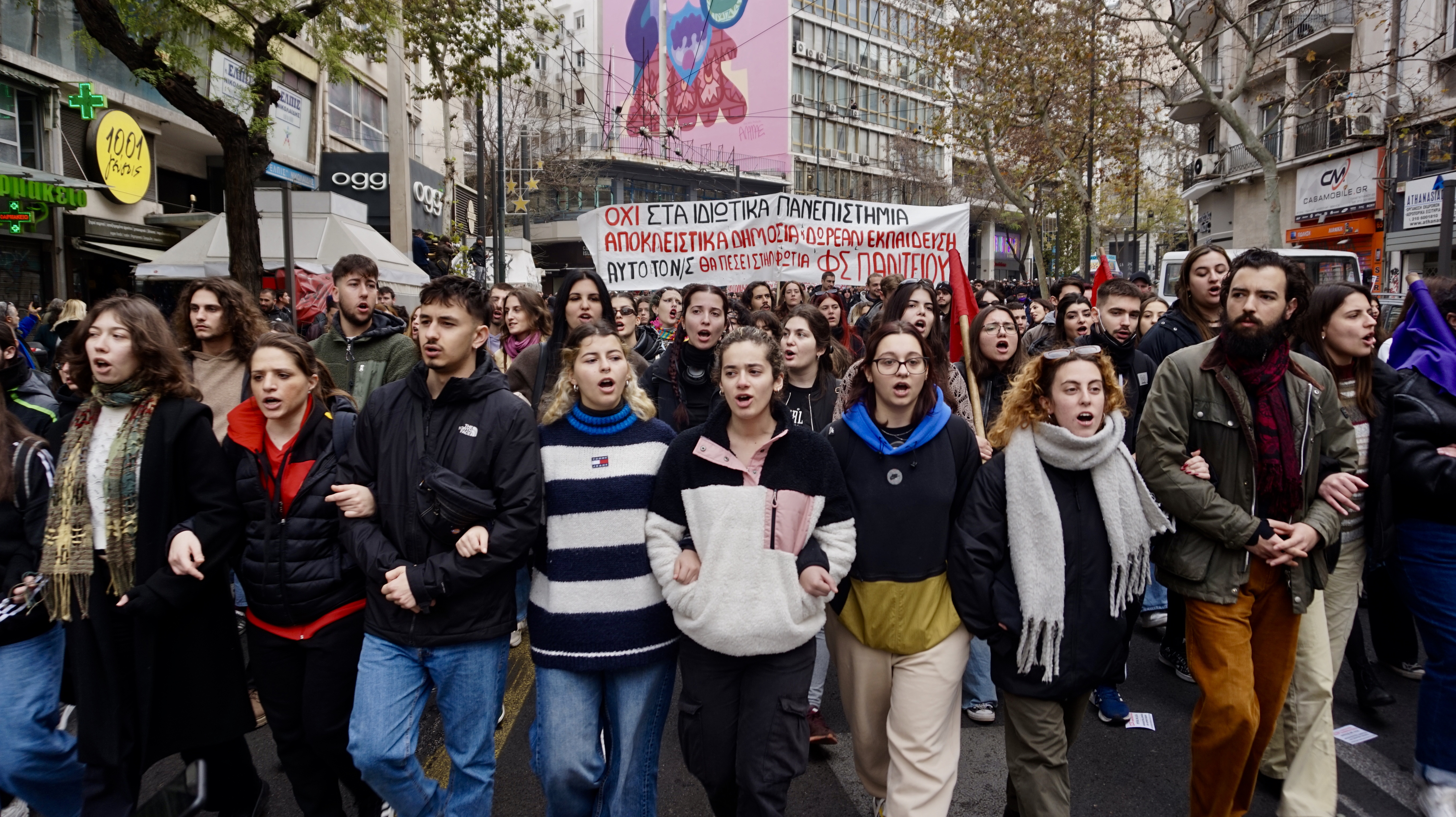 Περίπου 10.000 φοιτητές/τριες, μαθητές/τριες, εκπαιδευτικοί, εργαζόμενοι νοσοκομείων και πανεπιστημιακοί συμμετείχαν στη σημερινή (Πέμπτη) πορεία ενάντια στα ιδιωτικά πανεπιστήμια τής κοινοβουλευτικής χούντας Μητσοτάκη.
