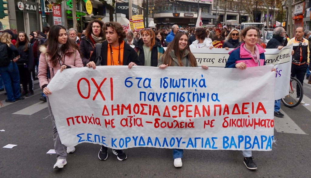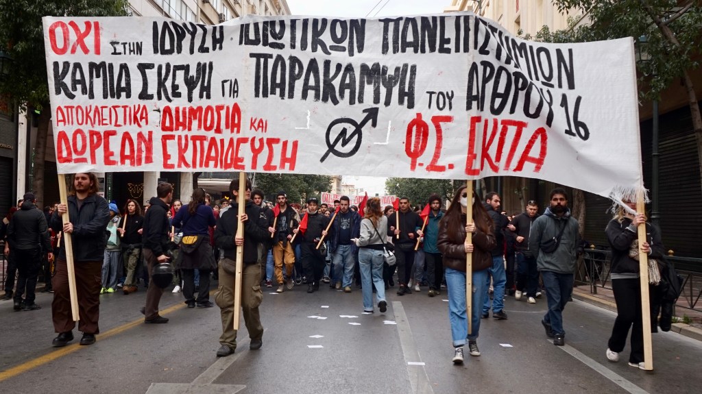 Φοιτητικοί σύλλογοι, εργατικά σωματεία και σύλλογοι εκπαιδευτικών καλούν σε διαδήλωση υποστήριξης του αγώνα φοιτητών/τριών και μαθητών/τριών ενάντια στα ιδιωτικά πανεπιστήμια.