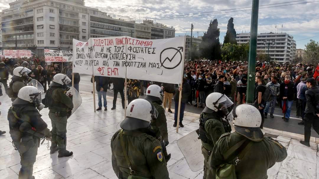 Η φοιτητική – μαθητική εξέγερση ενάντια στα σχέδια της χούντας Μητσοτάκη να επιβάλλει ιδιωτικά πανεπιστήμια και να διαλύσει τη δημόσια δωρεάν παιδεία, παρά το άρθρο 16 του Συντάγματος, πρέπει να αναλάβει πρωτοβουλία άμεσα για ενιαίο εργατικό – φοιτητικό – μαθητικό μέτωπο που θα τσακίσει τα βίαια σχέδια του Μητσοτάκη και των αφεντικών του στις Βρυξέλες και στην Γουάσινγκτον.