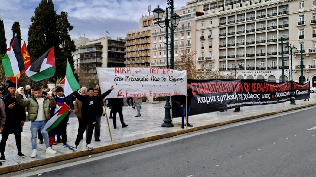 Αρκετοί φοιτητές/τριες κρατούσαν σημαίες της Παλαιστίνης.