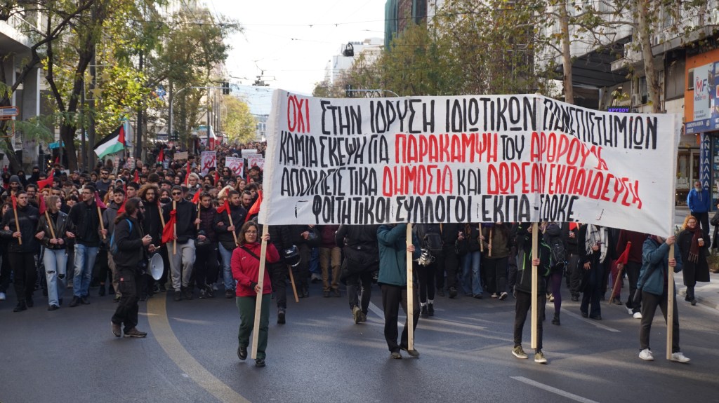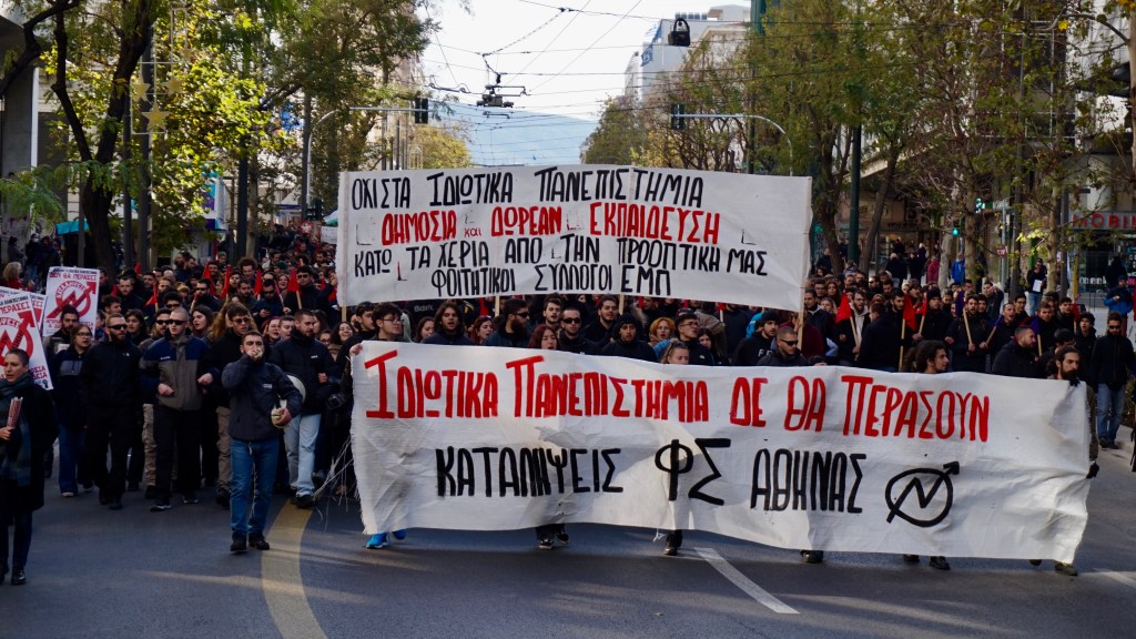 Δεκάδες χιλιάδες φοιτητές/τριες, μαθητές/τριες, σύλλογοι εκπαιδευτικών και πανεπιστημιακών θα συμμετάσχουν στην πανελλαδική πορεία της Πέμπτης στην Αθήνα ενάντια στο νομοσχέδιο για ιδιωτικά πανεπιστήμια – κατά παράβαση του Συντάγματος – τής κοινοβουλευτικής χούντας Μητσοτάκη.