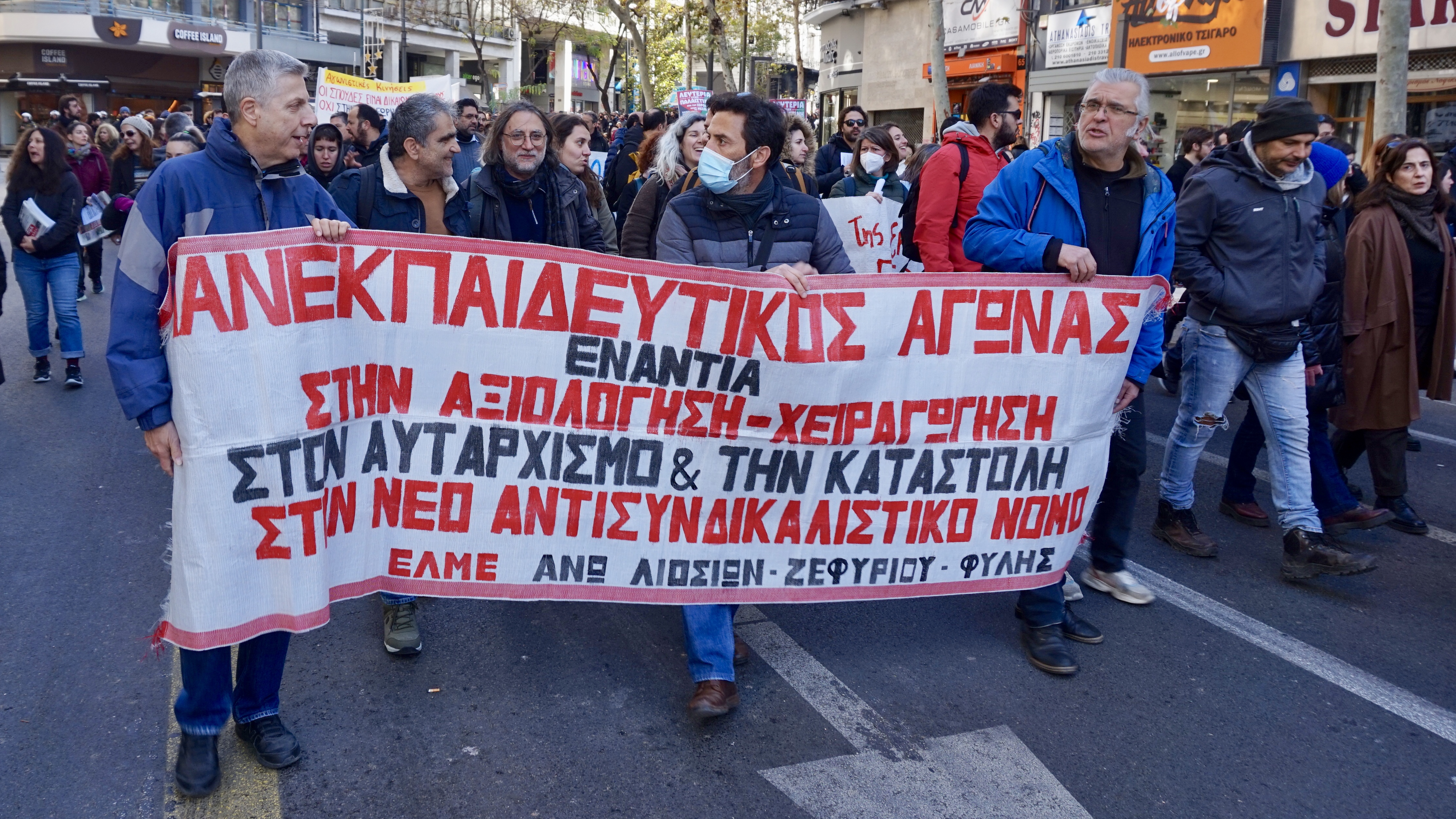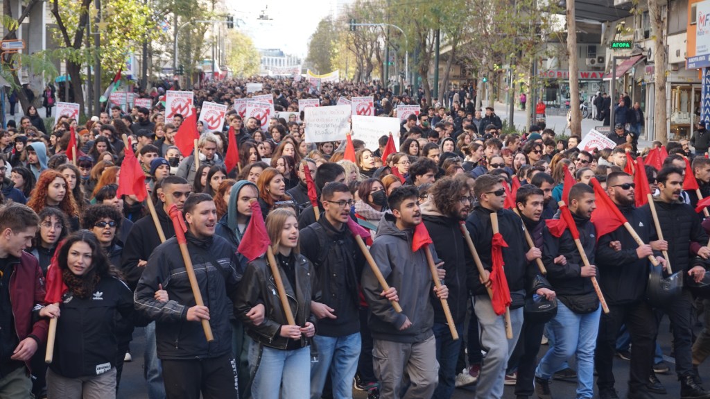 Χτες Δευτέρα βράδυ σχεδόν 1.000 φοιτητές/τριες, εκπαιδευτικοί και μερικά εργατικά σωματεία συμμετείχαν σε δυναμική πορεία με συνθήματα κατά τής καταστολής από τα ΜΑΤ του Μητσοτάκη και καλώντας την οργανωμένη εργατική τάξη στο πλευρό του αγώνα του φοιτητικού – μαθητικού κινήματος.