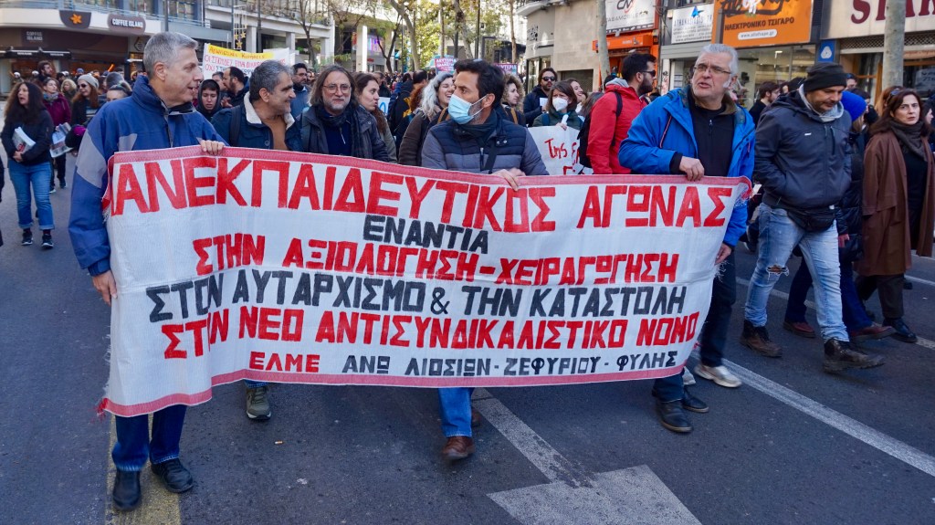Οι εκπαιδευτικοί αγωνίζονται με θάρρος και αποφασιστικότητα για τη δημόσια δωρεάν παιδεία επιστημονικών παιδαγωγικών μεθόδων και για μόνιμη και σταθερή εργασία με συλλογικές συμβάσεις – η χούντα Μητσοτάκη επιβάλλει τη διάλυση της δημόσιας παιδείας με κλεισίματα και ιδιωτικοποιήσεις και επιστροφή σε μια βαθιά ταξική παιδεία την αστυνομική πειθαρχία, στα όπου η συντριπτική παλιεοψηφία των μαθητών/τριών θα αποκλείεται από τις πανεπιστημιακές σχολές.