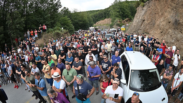 Από την απεργιακή συγκέντρωση των μεταλλουργών της Ελληνικός Χρυσός στη Χαλκιδική. Αγωνίζονται ενάντια στην επιβολή 12ωρου και διεκδικούν ΣΣΕ με αυξήσεις 20%. (Φωτο ΟΜΕ)