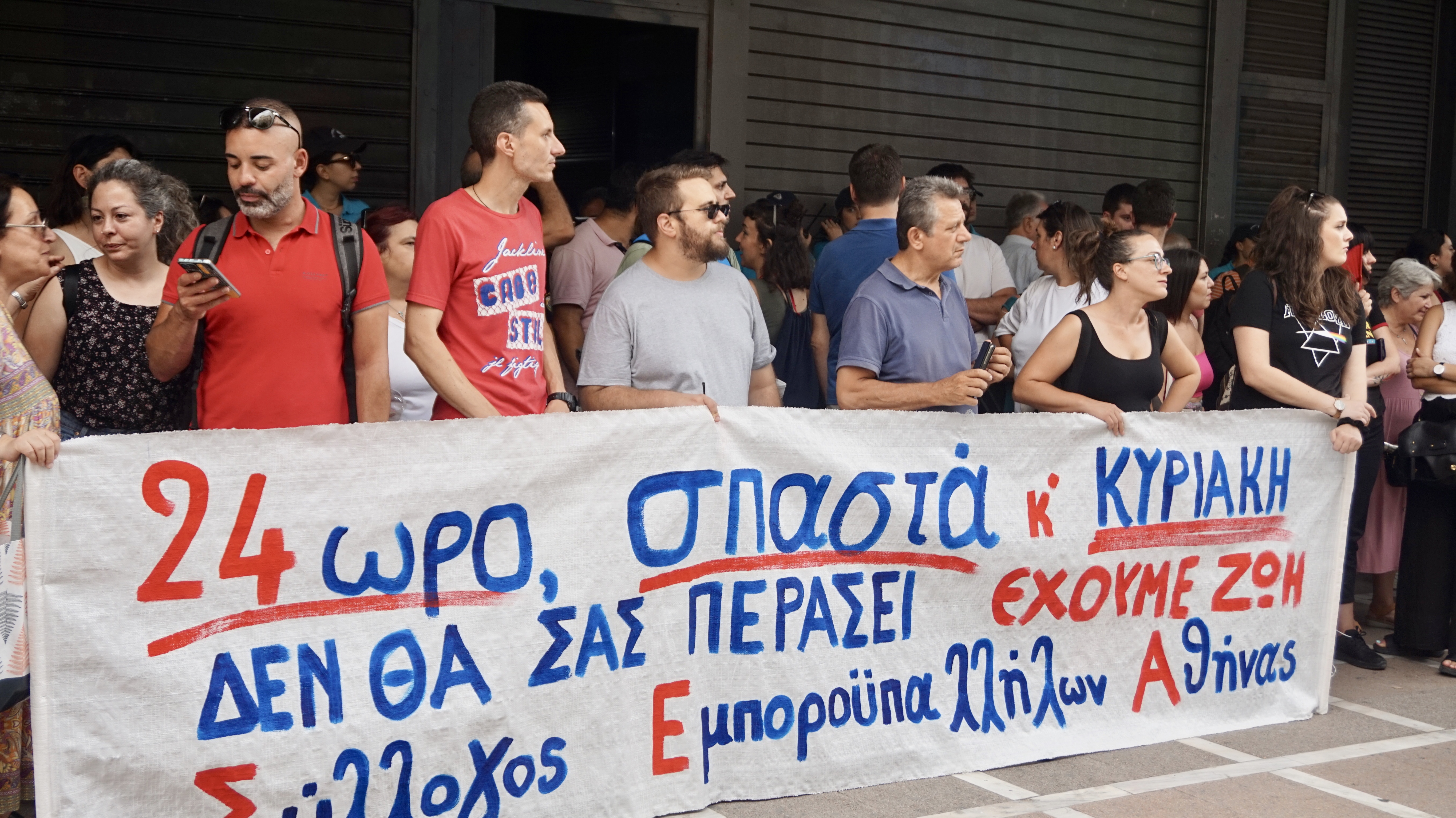Εκατοντάδες εργαζόμενοι με αντιπροσωπείες από Ομοσπονδία Φαρμάκου, Ομοσπονδία Τύπου-Χάρτου, Συλλόγου Εμποροϋπαλλήλων Αθήνας, Κλαδικού Σωματείου Ενέργειας, Συνδικάτου Μετάλλου Αττικής, κ.α. πραγματοποίησαν συγκέντρωση χτες Τετάρτη απόγευμα στο Υπουργείο Εργασίας για να διαμαρτυρηθούν και να καλέσουν σε αγώνα ενάντια στους νόμους της χούντας Μητσοτάκη που επιβάλλουν, από1 Ιούλη, την κατάργηση του 8ωρου και της πενθήμερης εργασίας στη βιομηχανία, εμπόριο, τράπεζες κ.α.!