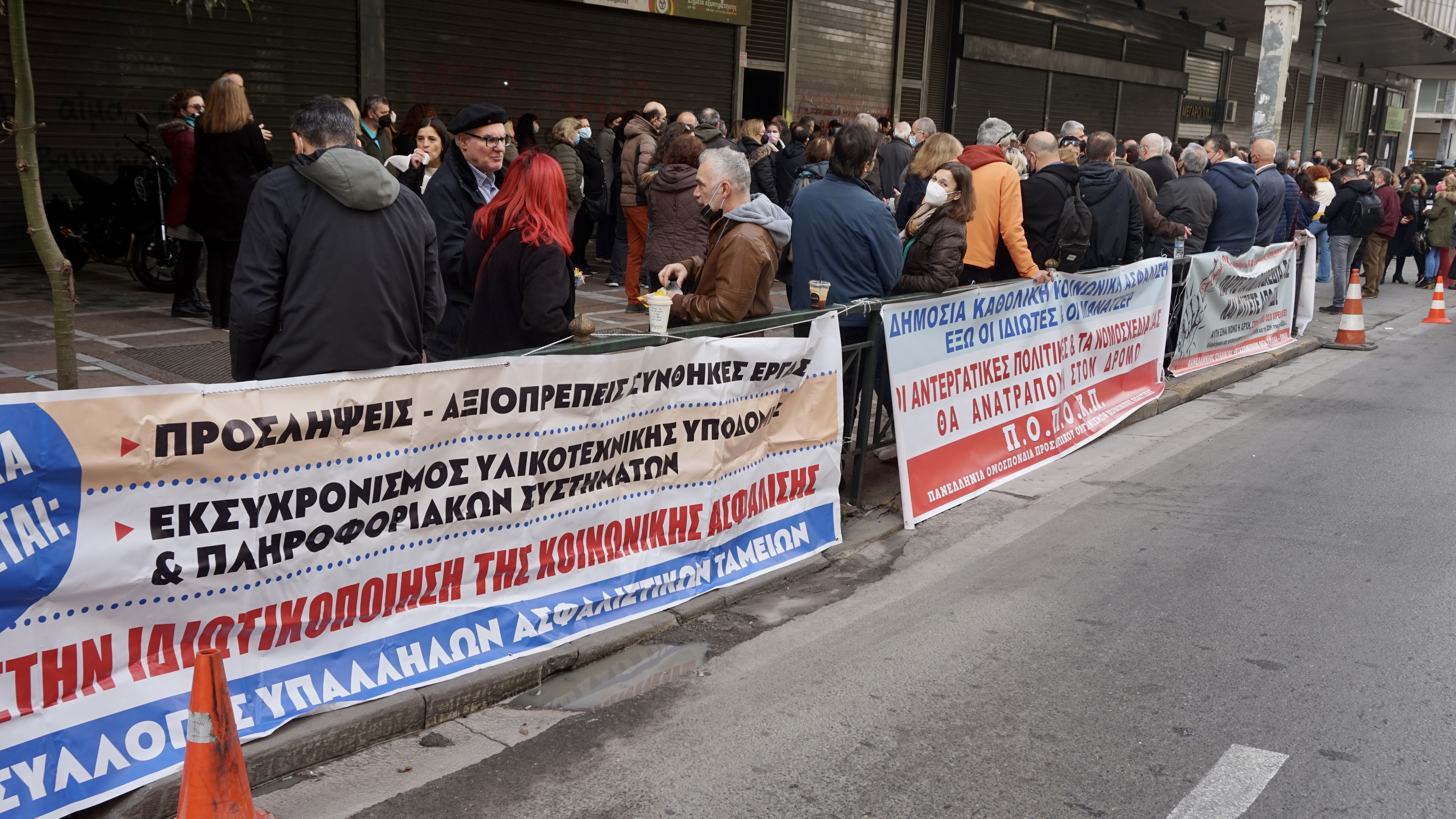 Περίπου 1.000 εργαζόμενες/οι σε Δήμους – κύρια συμβασιούχοι/ες – από Αθήνα-Πειραιά και Θεσπρωτία, Σέρρες, Σιάτιστα, Αγρίνιο κ.α. συμμετείχαν στην απεργιακή πορεία που οργάνωσε η ΠΟΕ-ΟΤΑ την Παρασκευή (21/3) στην Αθήνα με “βασικό αίτημα, την μονιμοποίηση των εργαζομένων Ε.Σ.Π.Α. που απασχολούνται στις Κοινωνικές Δομές των Δήμων (Παιδικοί Σταθμοί, Κ.Δ.Α.Π., Κ.Δ.Α.Π.-ΜΕΑ, Κέντρα Κοινότητος κ.α.) και τη διασφάλιση τής χρηματοδότησης για τη συνέχιση τής λειτουργίας αυτών των Κοινωνικών Δομών.” (ανακοίνωση ΠΟΕ ΟΤΑ)