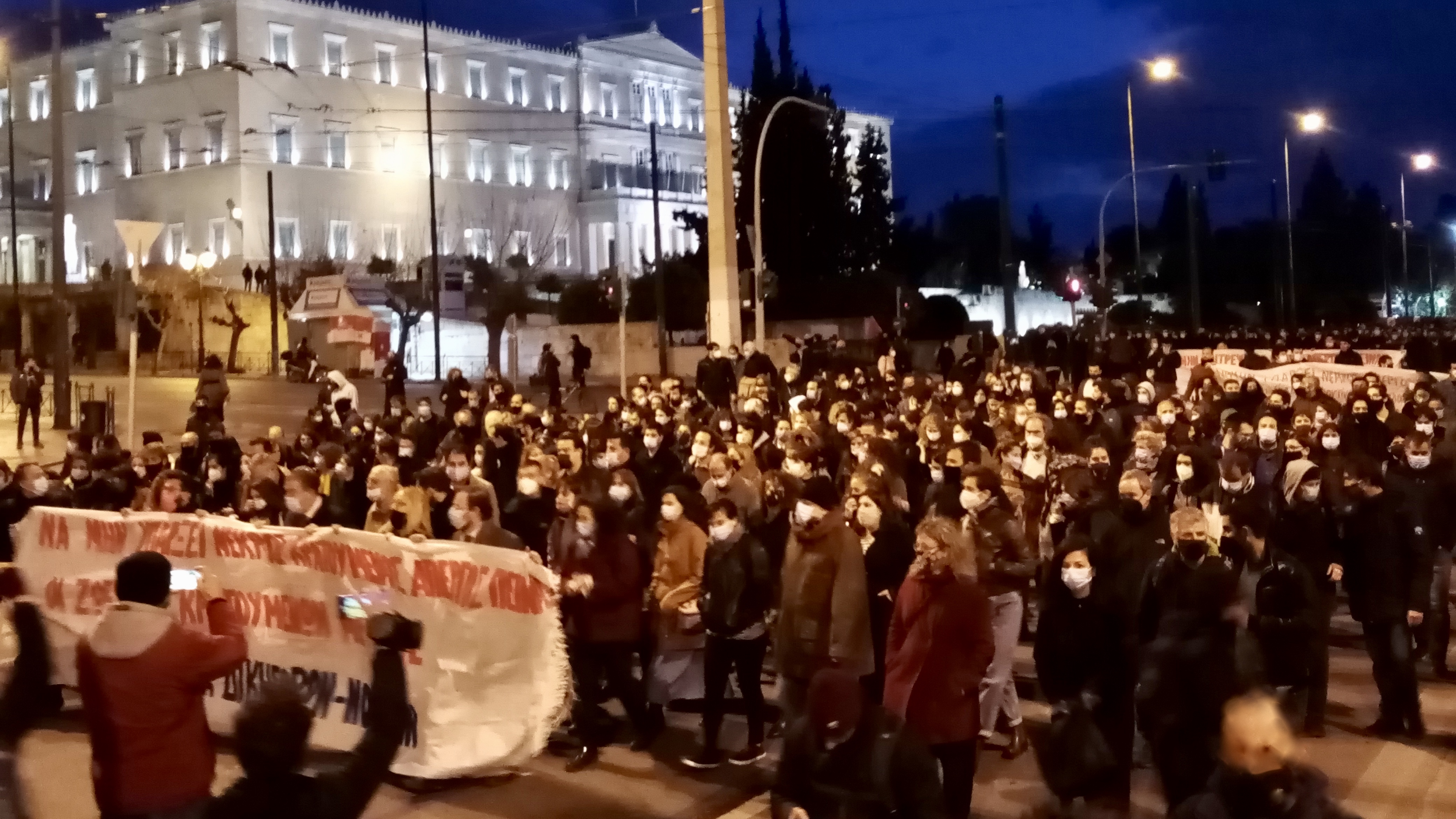 Μια ακόμη από τις λογοκριμένες φωτογραφίες του Μάριου Λώλου, από τη συγκέντρωση στην πλατεία Συντάγματος χτες Δευτέρα (1/3).