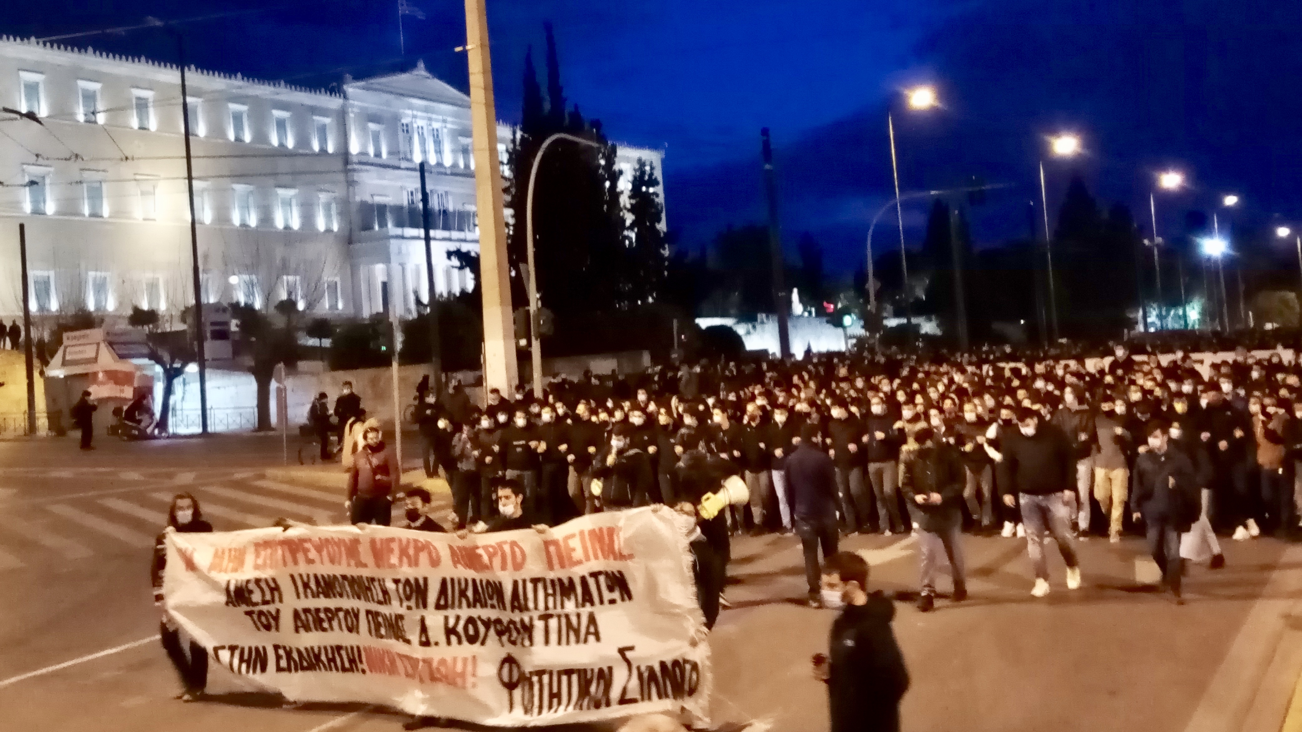 Ήταν η τρίτη μαζική πορεία μέσα σε τέσσερις μέρες για τον απεργό πείνας Δ. Κουφοντίνα, και τώρα η οργή και μαχητικότητα των φοιτητών εκφράστηκε με το κάλεσμα για την ανατροπή της κυβέρνησης.Η μαζική συμμετοχή των φοιτητών είναι μέρος των κινητοποιήσεων τους για την ακύρωση του νόμου Κεραμέως – Χρυσοχοΐδη.
